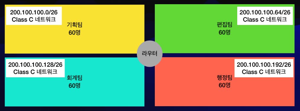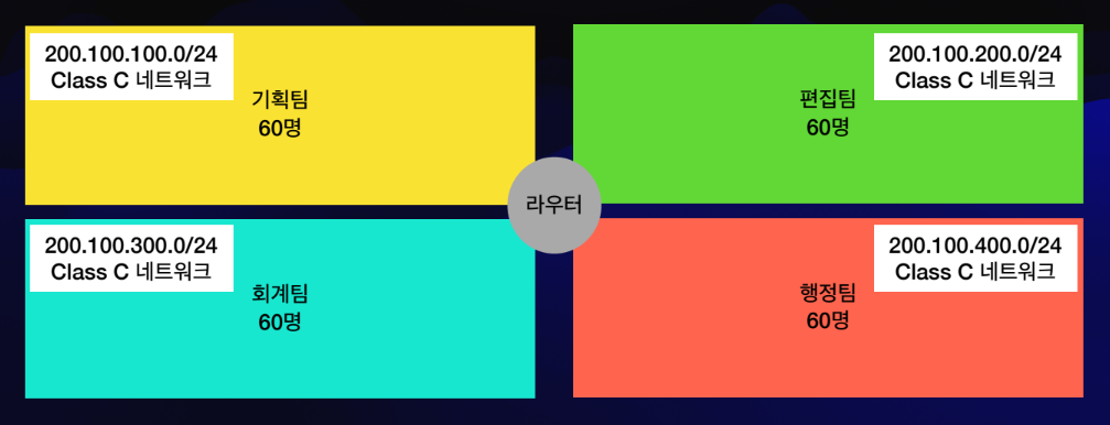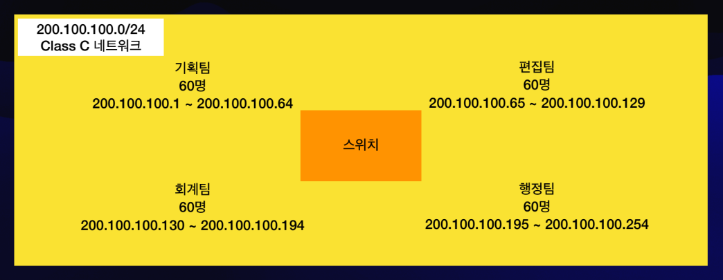 각 부서마다 254개의 호스트 주소를 사용할 수 있지만 각 부서에 60명 밖에 없다면 네트워크 낭비일 것이다.