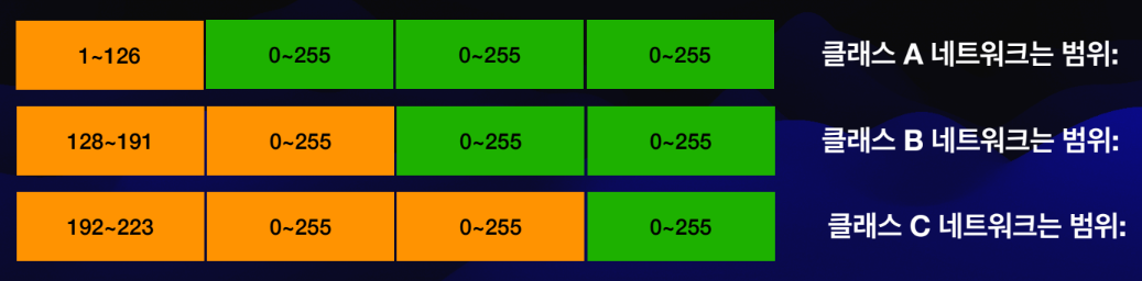 0~255의 범위로 x.x.x.x 4자리를 나타낼 수 있고, 이는 2진수로 변환하면 00000000~11111111이다.