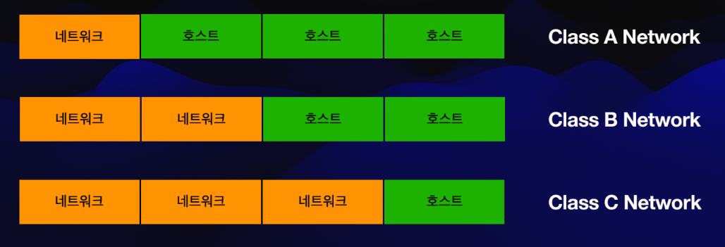IP 주소는 네트워크 부분과 호스트 부분으로 나뉜다.