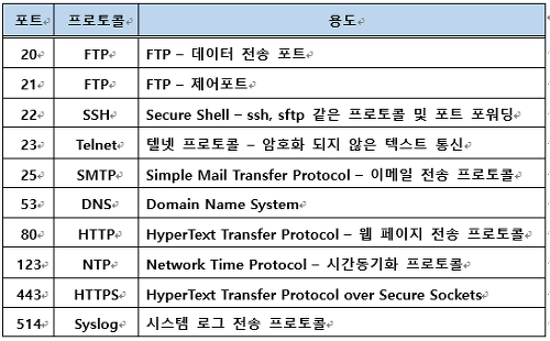 - 포트 번호 규칙은 다음과 같이 알려져 있다.